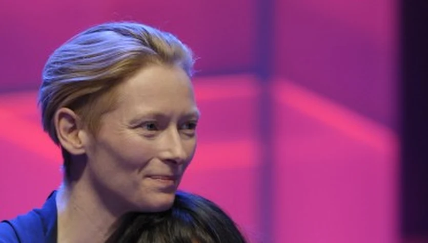 Przewodnicząca jury Tilda Swinton z odtwórczynią głównej roli w nagrodzonym Złotym Niedźwiedziem filmie "La teta asustada" - Magaly SolierAFP