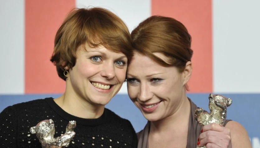 Reżyserka filmu "Alle Anderen" Maren Ade (L) i odtwórczyni głównej roli Birgit Minichmayr (P) ze Srebrnymi NiedźwiedziamiAFP