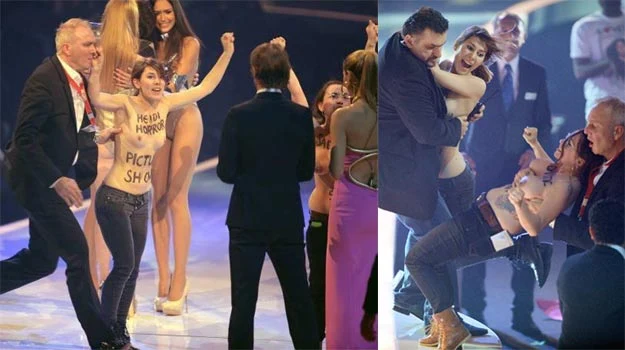 Prowadząca show, niemiecka modelka Heid Klum, wydawała się być w szoku, kiedy na scenę telewizyjnego show "Top Model" wtargnęły aktywistki z feministycznej grupy Femen. Jedna z dziewczyn miała na klatce piersiowej i brzuchu napis "Heidi Horror Picture Show", ciało innej ozdobione było bezpośrednim komunikatem: "Sadystyczne show".