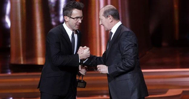 Swą trzecią Telekamerę Maciej Kurzajewski odebrał z rąk Włodzimierza Szaranowicza.