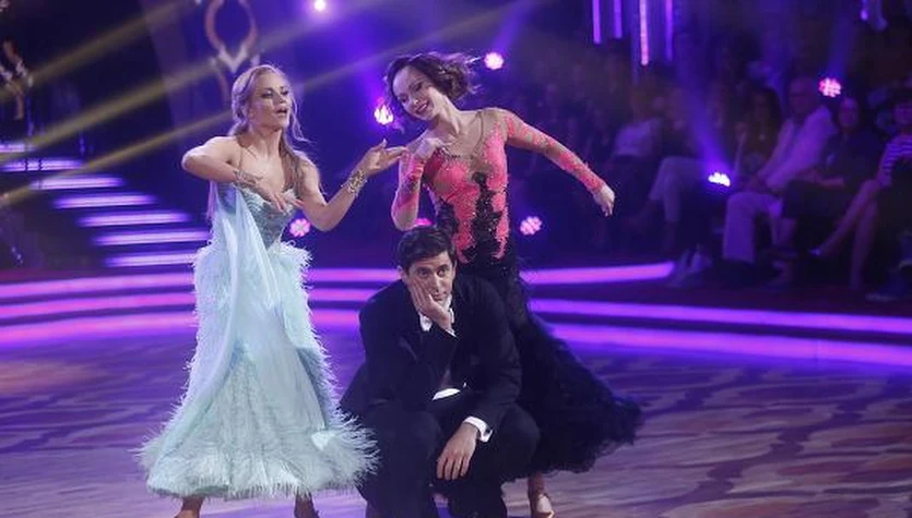 Do wielkiego finału programu "Dancing with the Stars. Tańca z Gwiazdami" weszli Krzysztof Wieszczek i Agnieszka Kaczorowska oraz Tatiana Okupnik i Tomasz Barański. Niespodziewanie z show Polsatu musieli pożegnać się Julia Pogrebińska i Rafał Maserak. Już 22 maja okaże się, kto wytańczy Kryształową Kulę. Na zdjęciu: Krzysztof Ibisz, Agnieszka Kaczorowska i Krzysztof Wieszczek, fot. Michał Baranowski