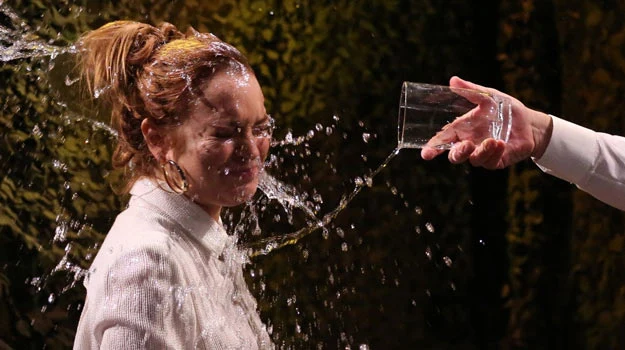 Co prawda pierwsze rozdanie przegrała Lohan - i jako pierwsza została oblana wodą przez prowadzącego program, jednak karta szybko się odwróciła i to aktorka miała więcej okazji do wylania na Fallona szklanek z wodą, nie odmawiając sobie zmoczenia... krocza prowadzącego.