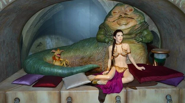 Największą z rzeźb jest ta przedstawiająca Jabbę - ma ona prawie 3 metry długości, 1,5 metra wysokości i waży 220 kg. W tej scenie znajdzie się również księżniczka Leia w słynnym złotym kostiumie kąpielowym.
