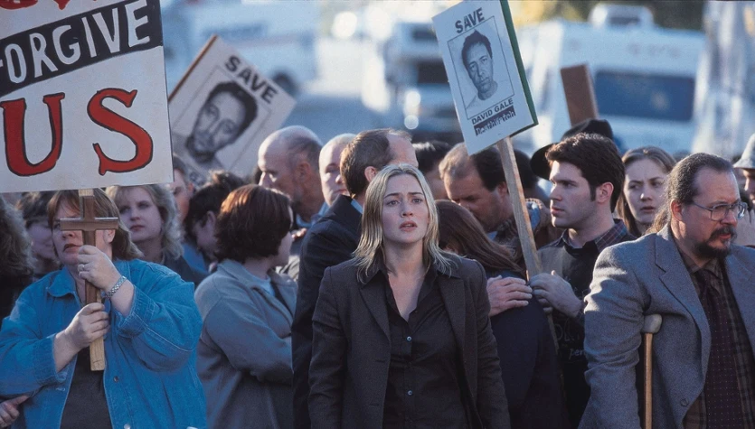 Winslet wcieliła się w postać dziennikarki Bitsey Bloom, która postanawia opowiedzieć historię profesora uniwersytetu w Teksasie (Kevin Spacey), który od lat aktywnie działał na rzecz zniesienia kary śmierci. Jednak pewnego dnia sam trafia do celi śmierci skazany za gwałt i morderstwo.