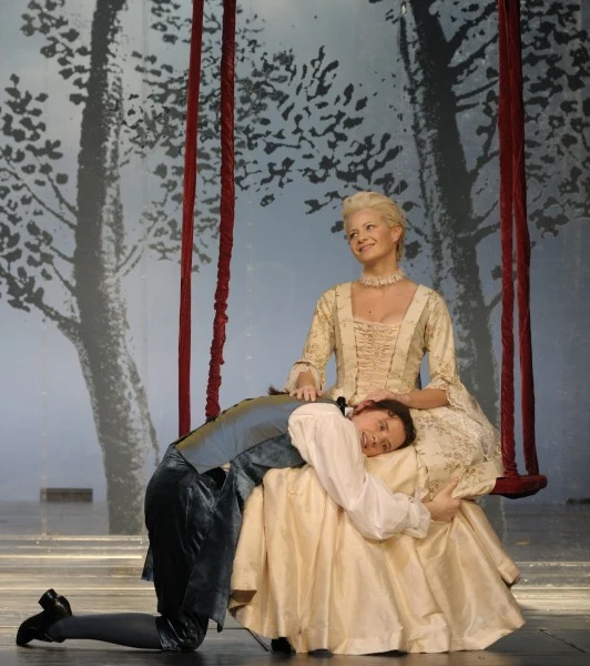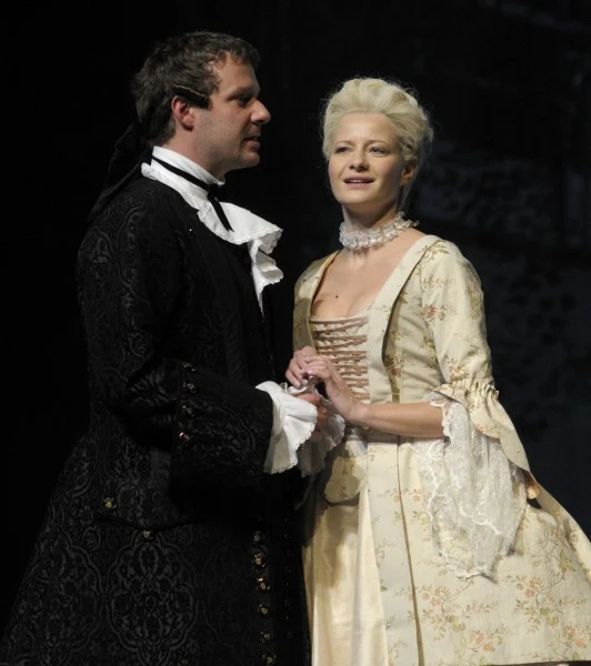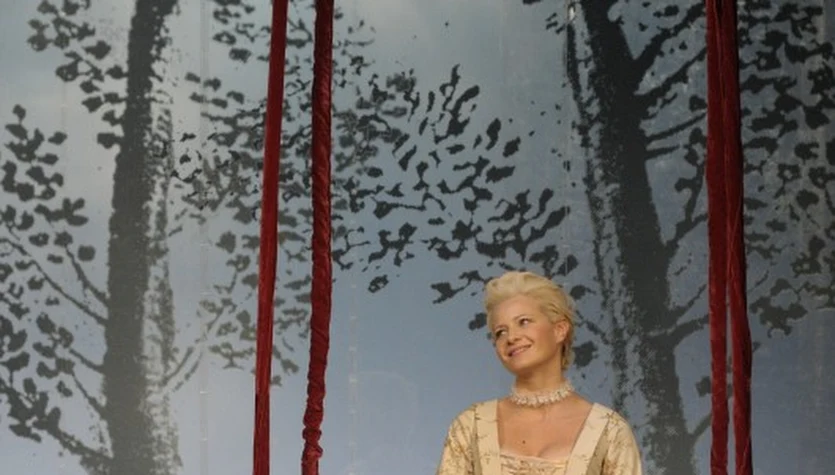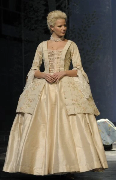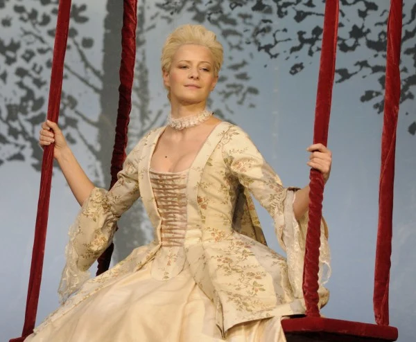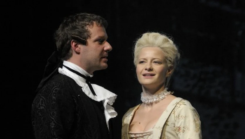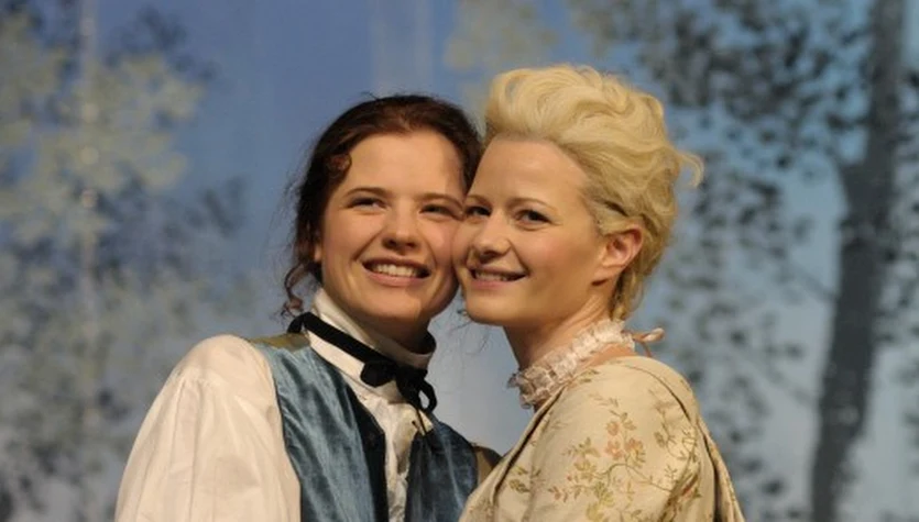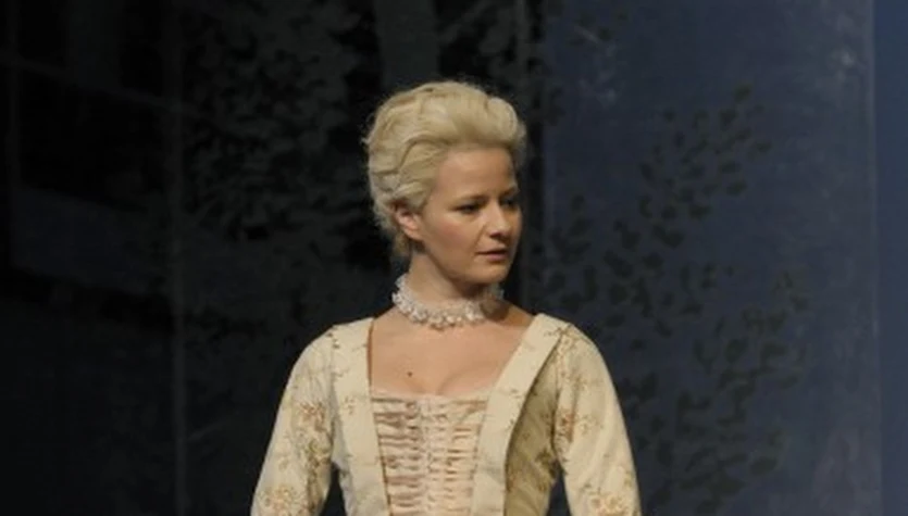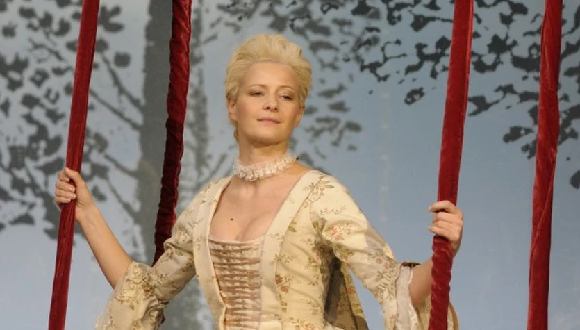 Małgorzata Kożuchowska na scenie Teatru Narodowego w "Umowie, czyli łajdaku ukaranym", gdzie wcieliła się w postać hrabiny.