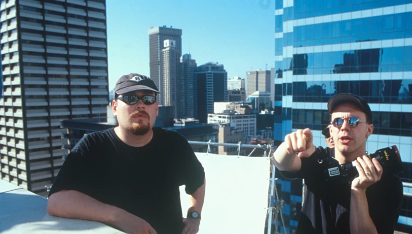 Na zdjęciu: Andy i Larry Wachowscy na planie filmu "Matrix"AKPA