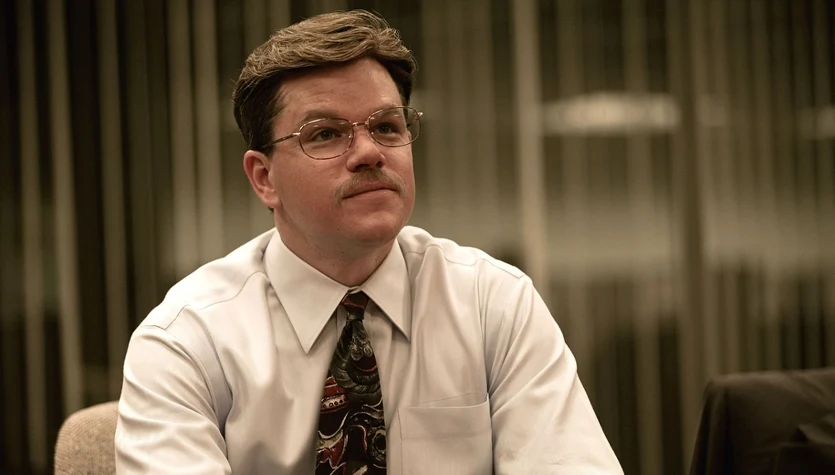 Matt Damon nie tylko przytył kilkanaście kilogramów, ale dał też sobie przykleić niemodne wąsy i perukę i po raz kolejny udowodnił, że z dość niezłym efektem radzi sobie w komediowych rolach.