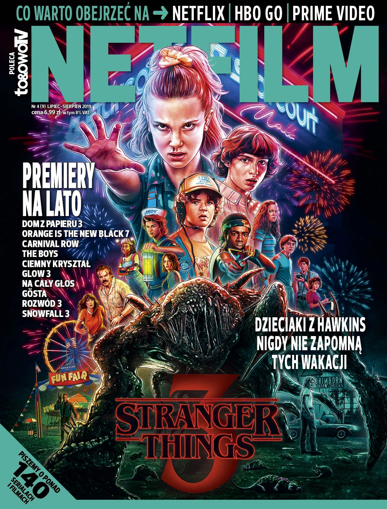 NETFILM to mnóstwo recenzji i rekomendacji seriali i filmów dostępnych w serwisach Netflix, HBO GO i Prime Video. W tym numerze znalazły się recenzje głośnych produkcji z ostatnich miesięcy: "The Rain 2", "Dark 2", "Bosch 5", "The Society", "Dobry omen", "Jessica Jones 3", "Happ! 2", "Jestem matką", "Lucyfer 4" i wielu innych.