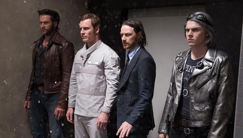 Hugh Jackman, Michael Fassbender, James McAvoy i Evan Peters w scenie z filmu "X-Men: Przeszłość, która nadejdzie"materiały dystrybutora